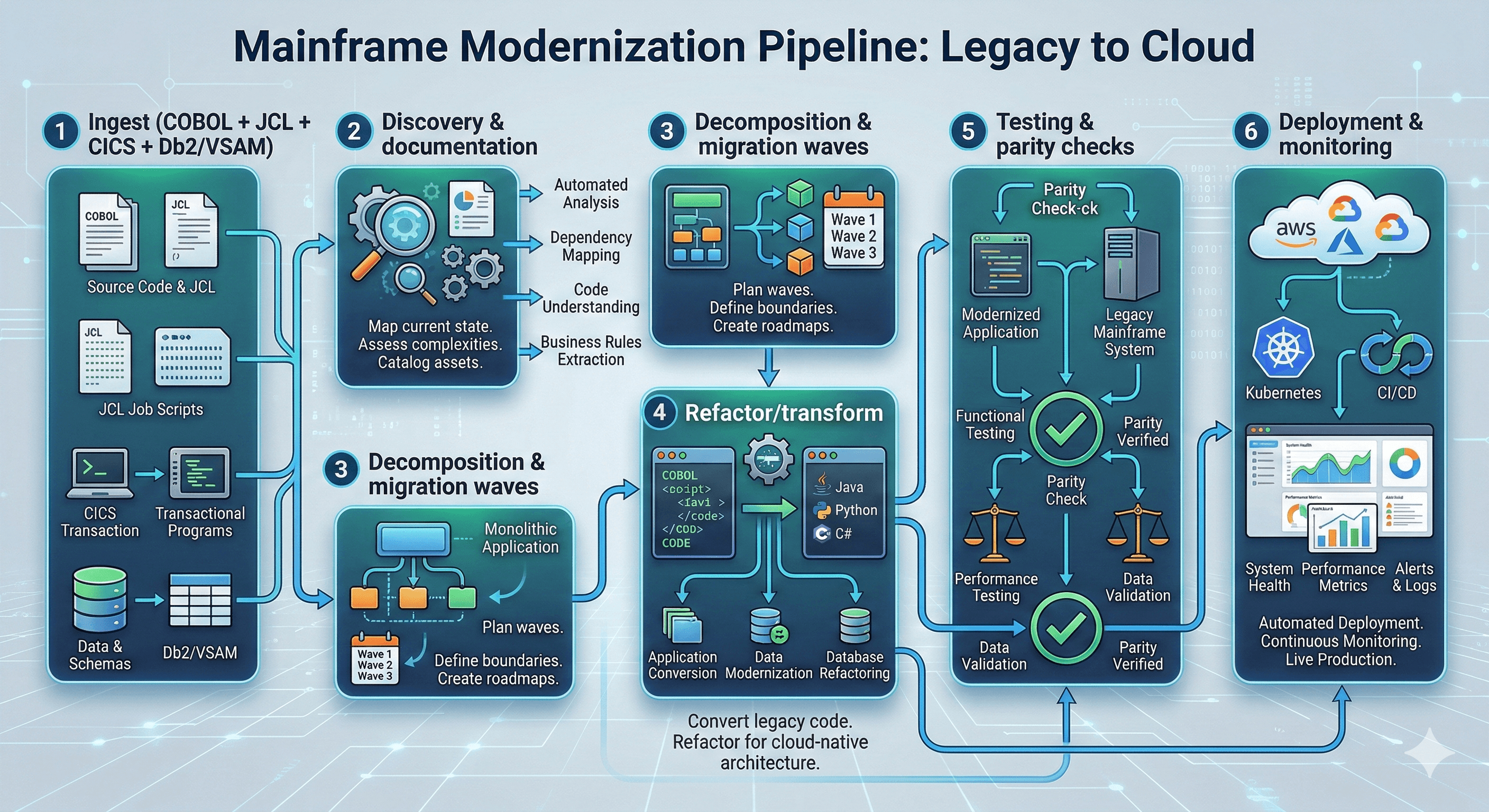 Modernisation platforms now support refactoring pathways such as transforming COBOL applications into modern Java-based applications, with human review and validation.