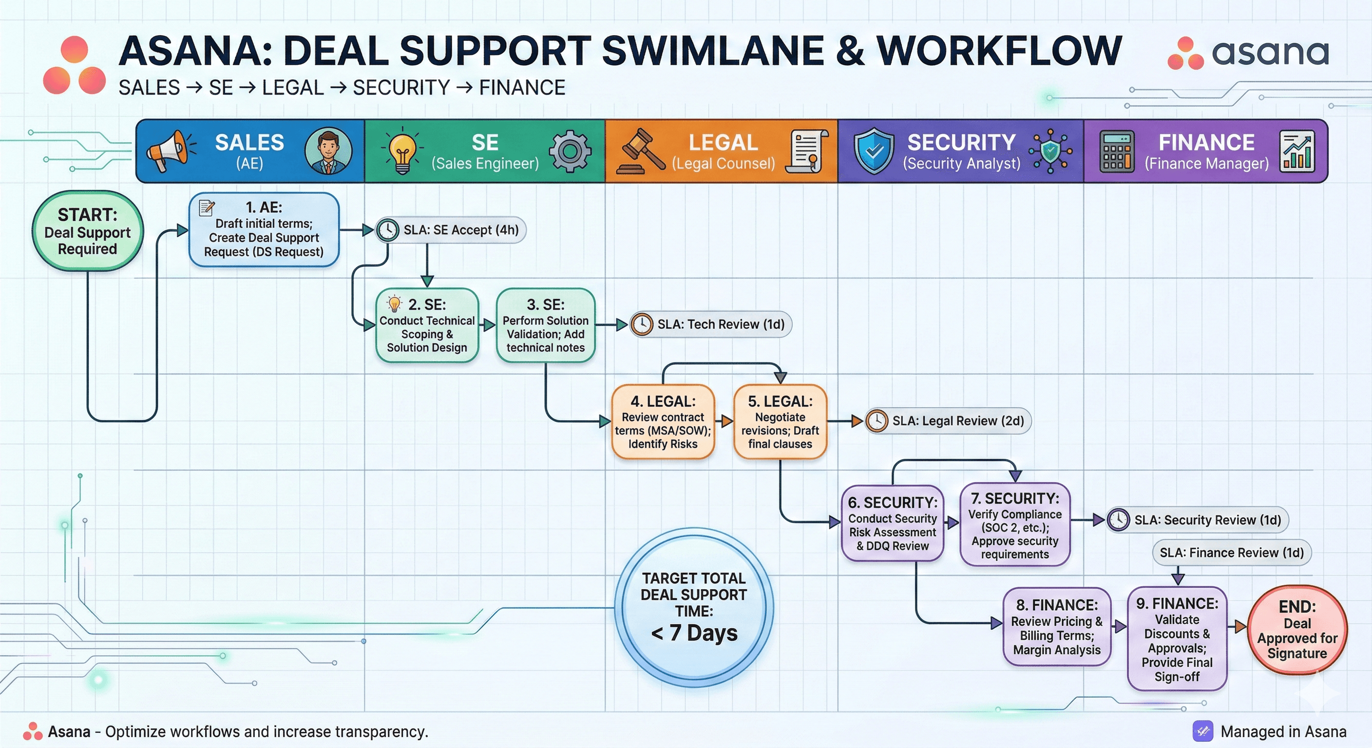 Asana can be the operating system for those plays—keeping commercial and delivery teams aligned, with shared visibility.